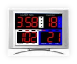 Utilising a PC and large screen can sometimes offer a substantial saving over custom hardware like the judo scoreboard shown.